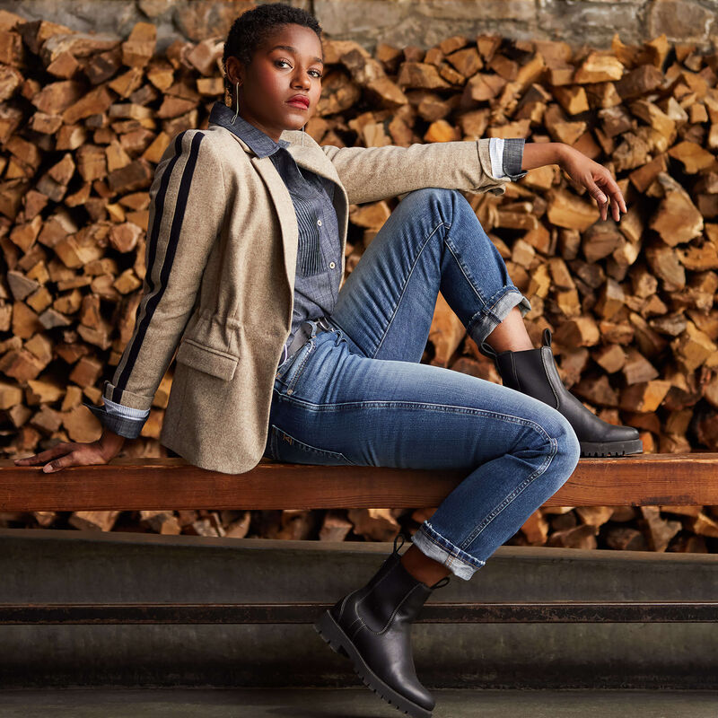 Dornie Blazer snålar inte med detaljerna. Den är genomtänkt tillverkad av etiskt framställd italiensk ull, den har en spännbar midja som smickrar din form och ett kritrandigt foder som känns silkeslent. De vackra, häststämplade metallknapparna ger en elegant, iögonfallande finish.