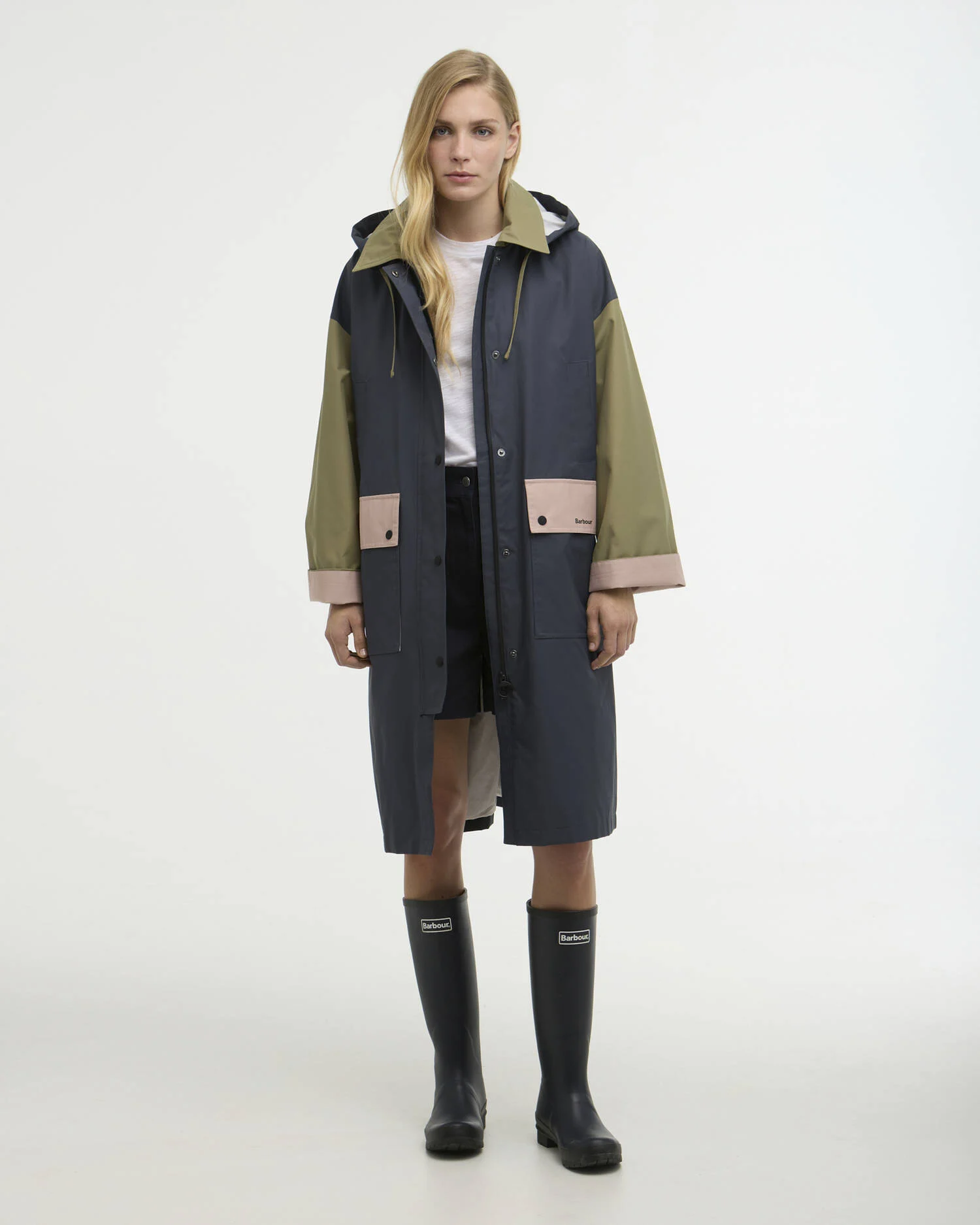 Barbour Blearigg-jackan har en lång design inspirerad av den klassiska Barbour Border-stilen. Den har en överdimensionerad passform, en avtagbar huva för mångsidighet, passpoalerade handvärmarfickor och påsydda fickor nedtill för praktisk användning. En färgställning erbjuder en djärv färgblocksdesign som ger en modern twist till denna tidlösa, regntäta jacka.