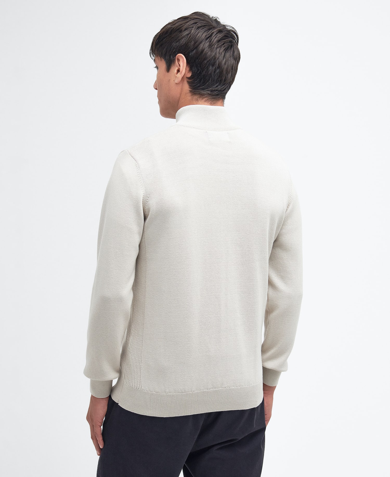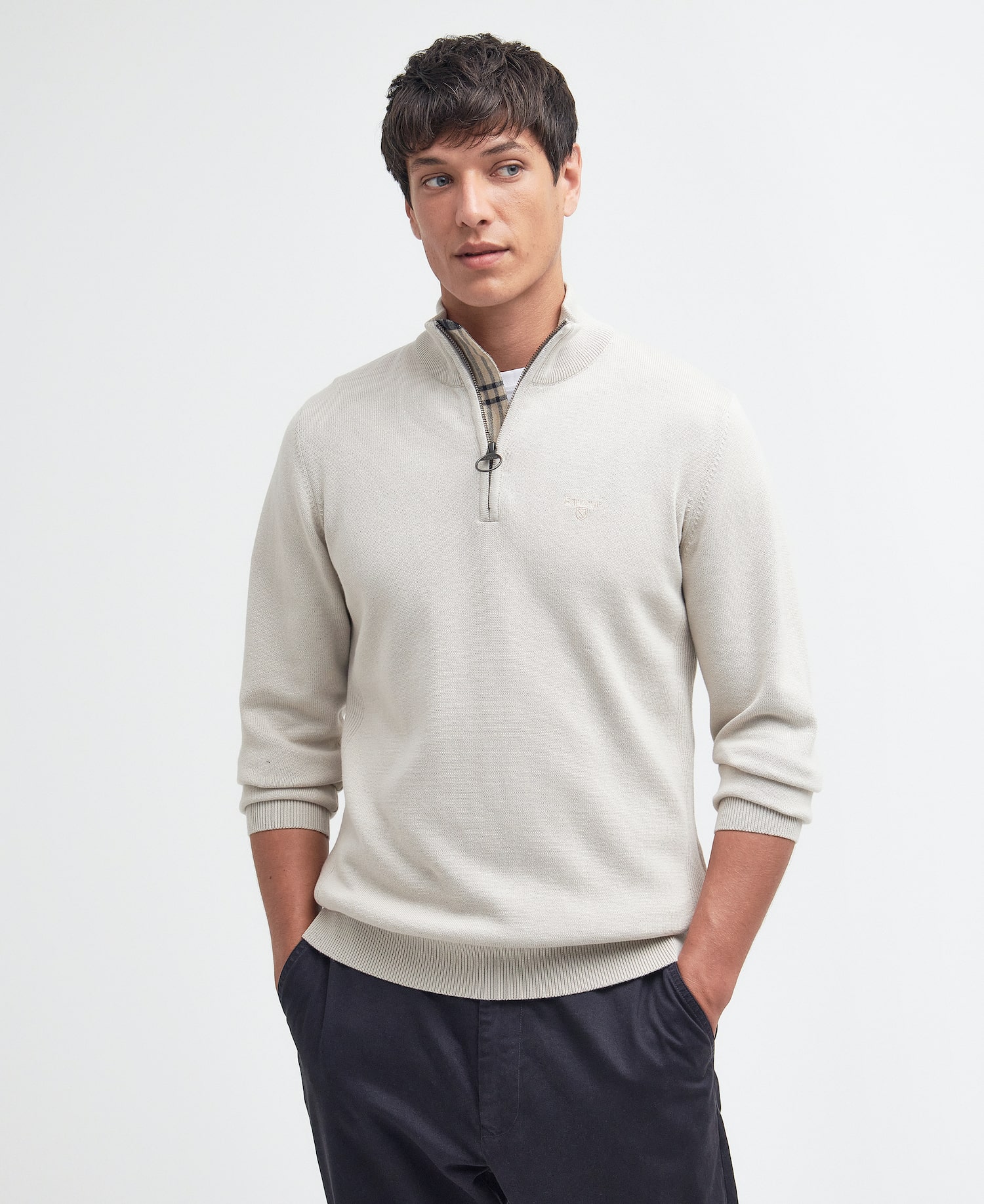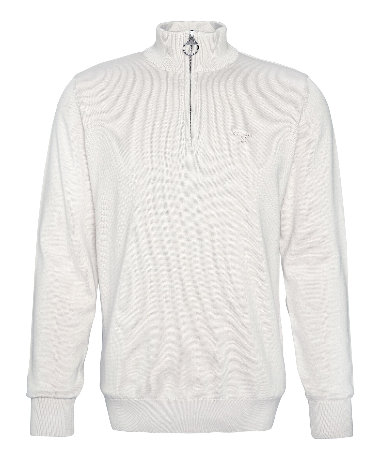 Barbour Cotton Half Zip – underbar sval stickad tröja i bomull med blixtlås i halsen.