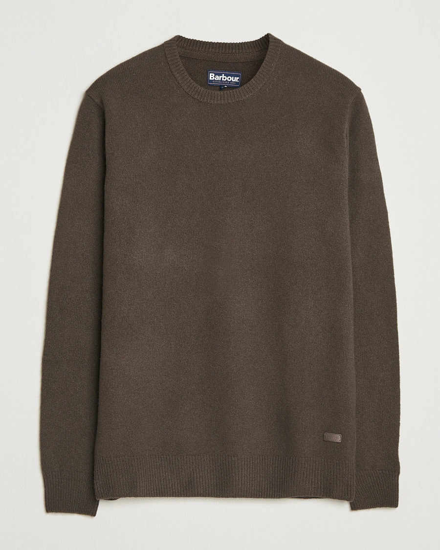 Stickad tröja med rund halsringning producerad i ett kraftigt samt melerat ullgarn från Barbour Lifestyle. Förstärkt med kontrasterande patchar i mjuk mocka på ärmbågarna.