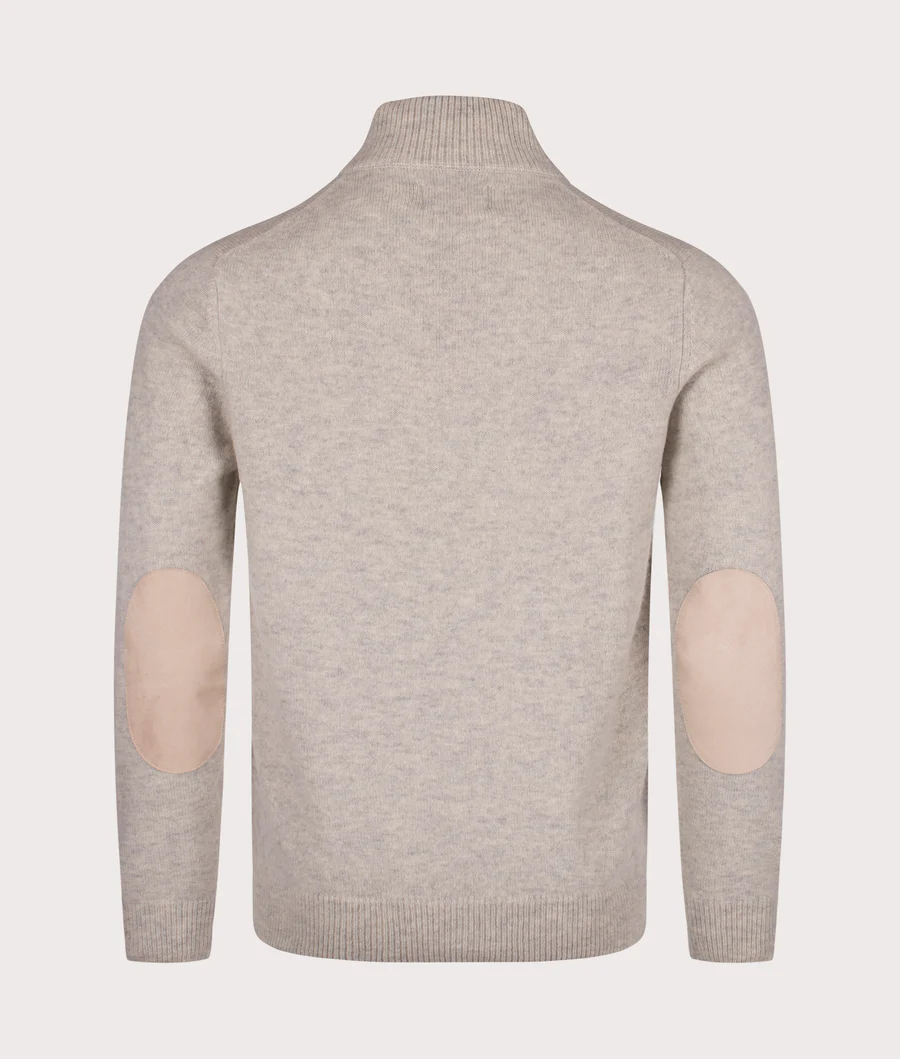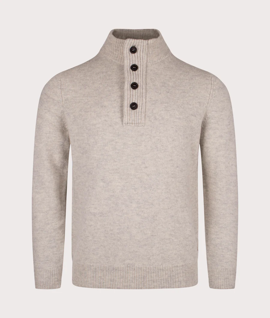 Denna Barbour-tröja är tillverkad av 100 % ull och har läderlappar på armbågarna som en anspelning på lantlivet. Plagget har detaljer som en knäppt trattkrage och långa ärmar, vilket gör den perfekt för att hålla sig varm och mysig.
