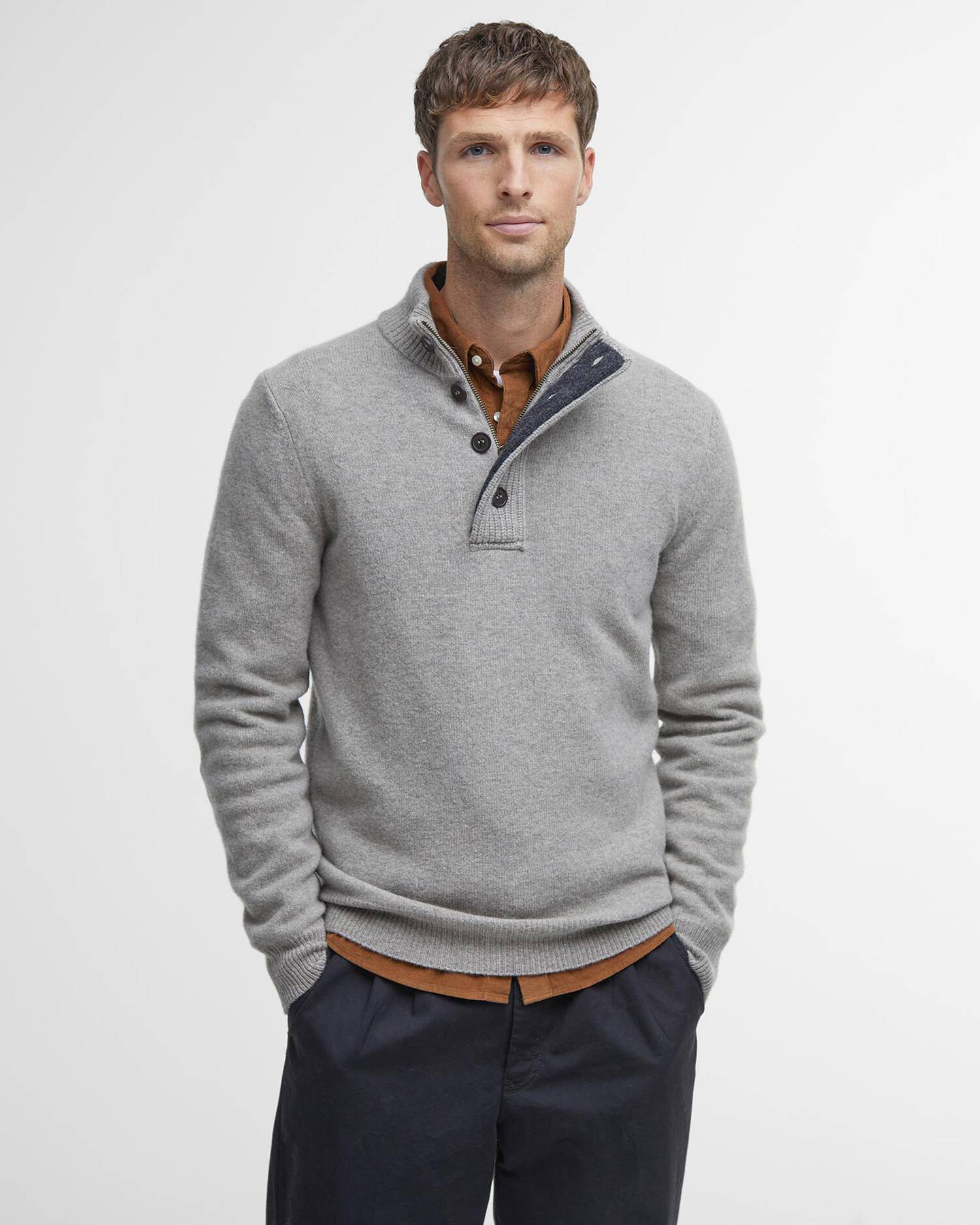 Denna Barbour-tröja är tillverkad av 100 % ull och har läderlappar på armbågarna som en anspelning på lantlivet. Plagget har detaljer som en knäppt trattkrage och långa ärmar, vilket gör den perfekt för att hålla sig varm och mysig.