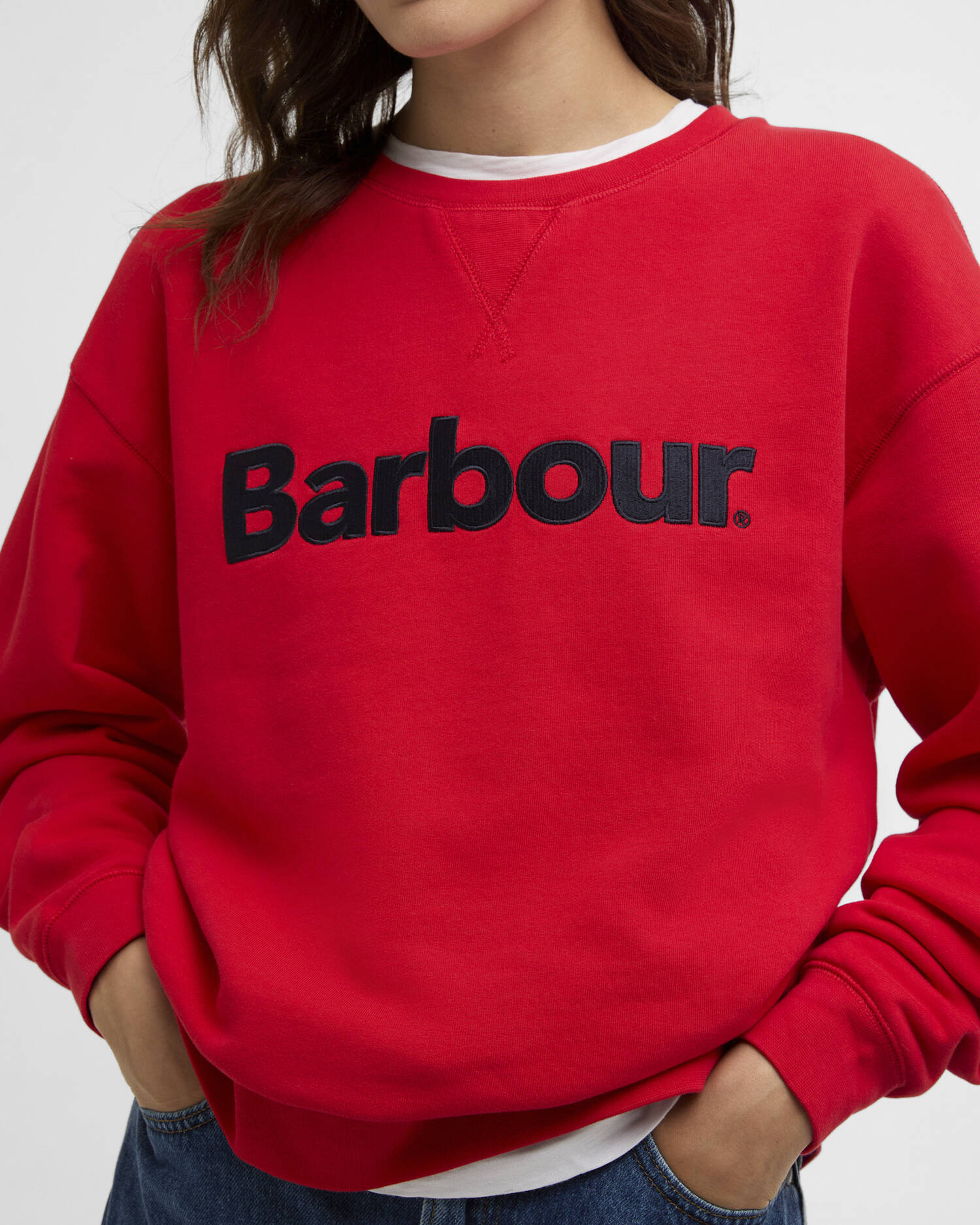 Barbour Hartland Logo-tröjan har en universitetsinspirerad design för promenader längs kusten eller på landsbygden. Den här tröjan är det perfekta lager-på-lager-plagget med en Barbour-logotyp på bröstet och är tillverkad av en bomullsblandning för högsta komfort. Den perfekta kombinationen med jeans eller en midikjol ger denna tröja en tidlös stil till vilken outfit som helst.
