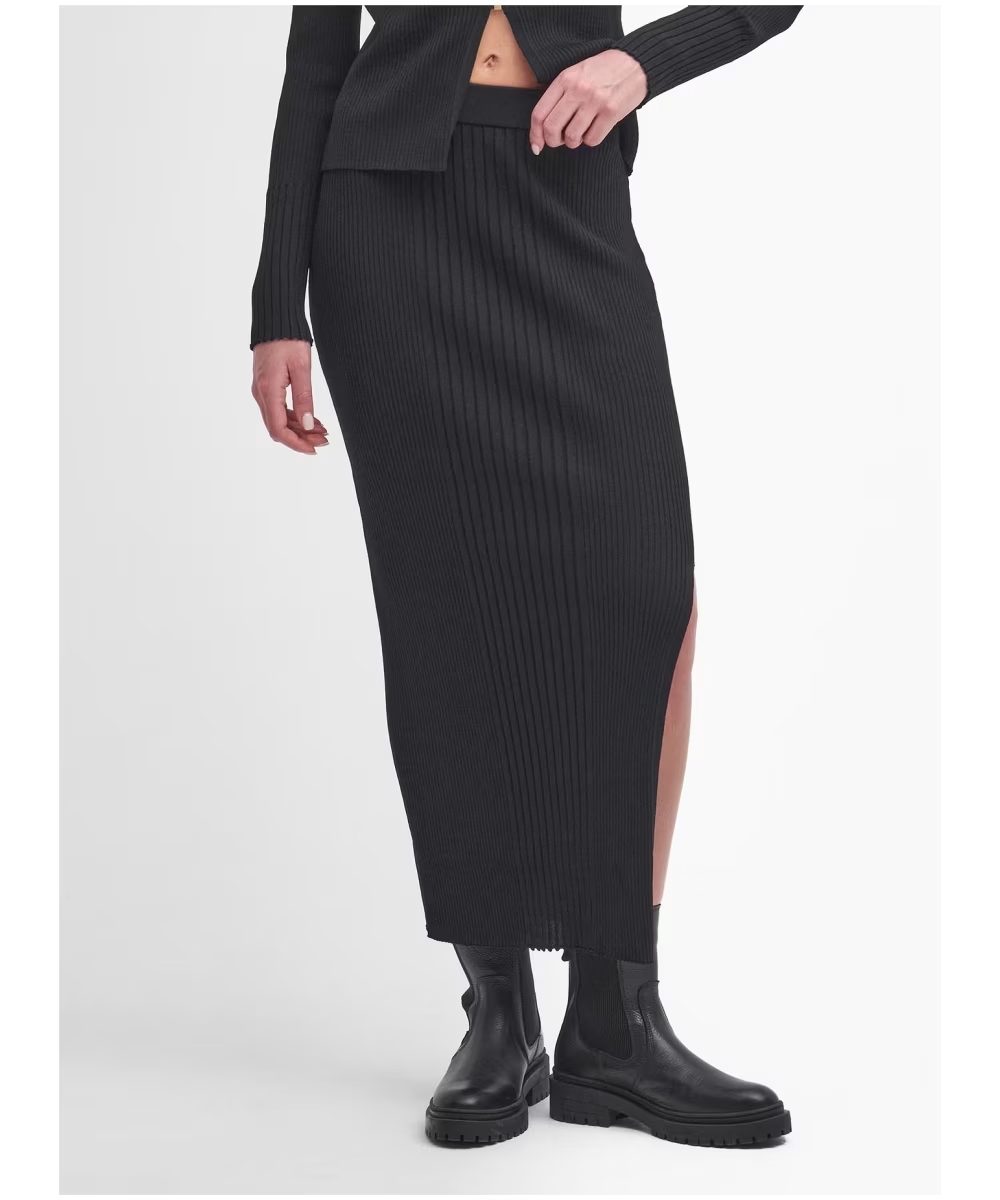 Vi presenterar Barbour International Mondale stickad midikjol för kvinnor, en sofistikerad bas för din garderob. Tillverkad med komfort och stil i åtanke, den här midilånga kjolen har en ribbstickad tubkonstruktion med ett rörformigt ribbband för en smickrande passform. Dess utmärkande egenskaper inkluderar breda ribbpaneler i mitten fram och bak, vilket ger textur och visuellt intresse, medan en djup sidosplittring på vänster sida förbättrar rörelse och lockelse. Komplett med en silikon ID-bricka i mitten bak i midjan, utstrålar den här kjolen diskret elegans. Lyft din garderob med denna fantastiska midikjol som du säkert kommer att älska att styla under säsongen.