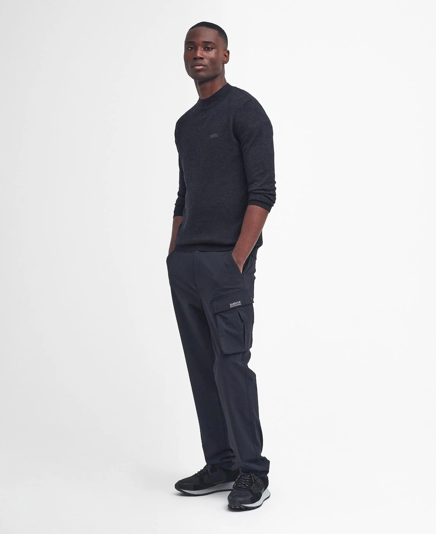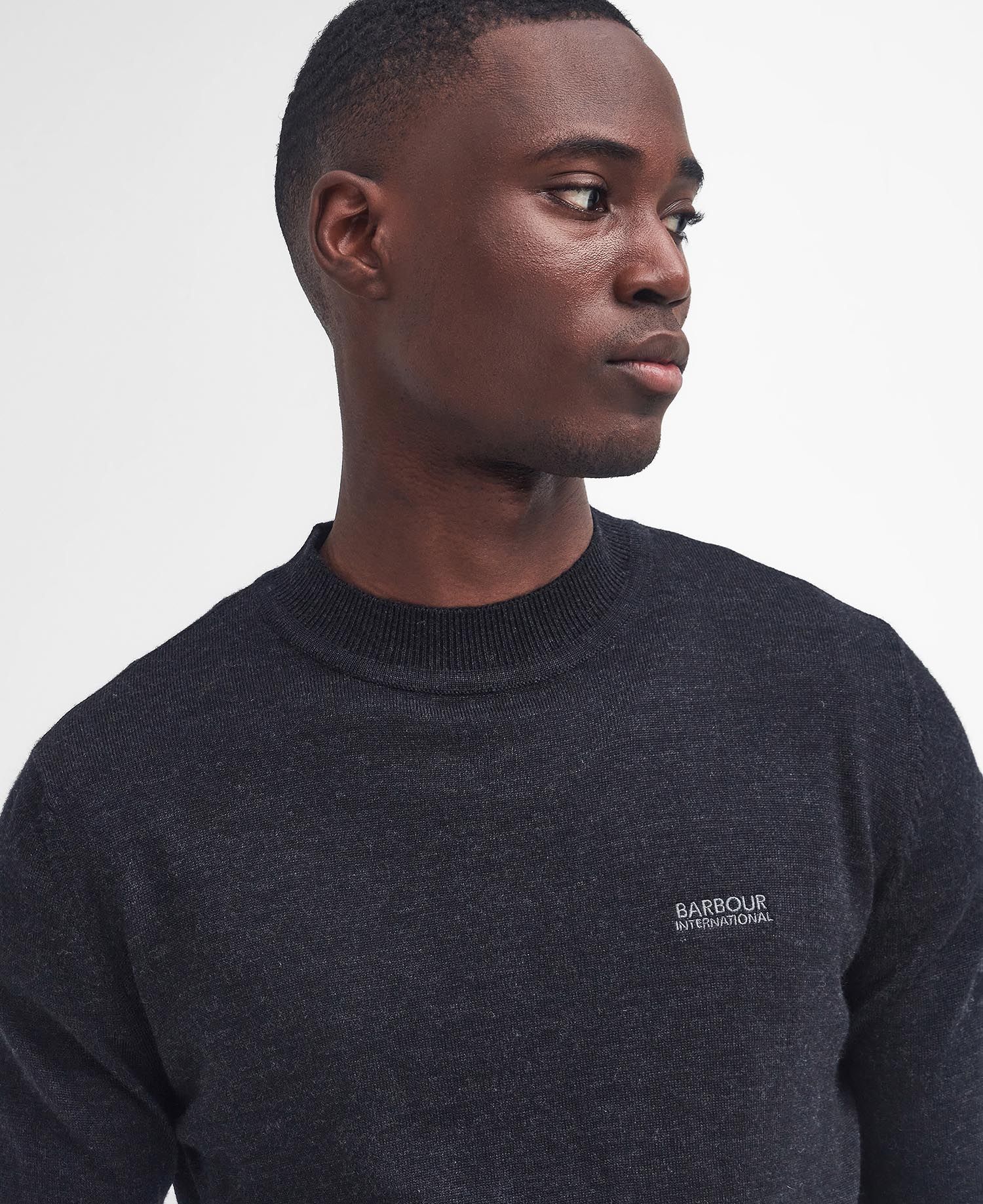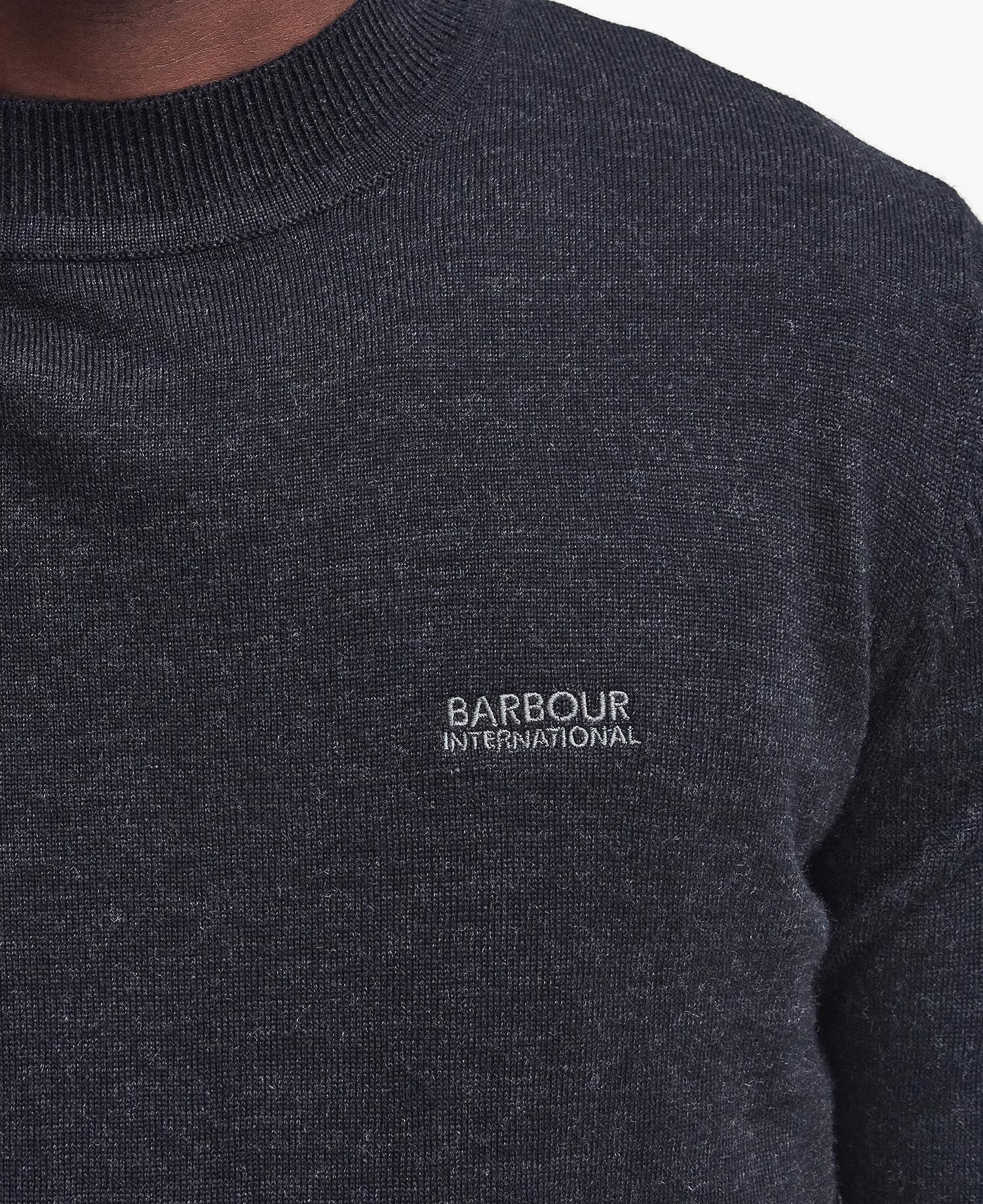 Barbour International kontrasterande direktbroderi till bärarens vänstra bröst.