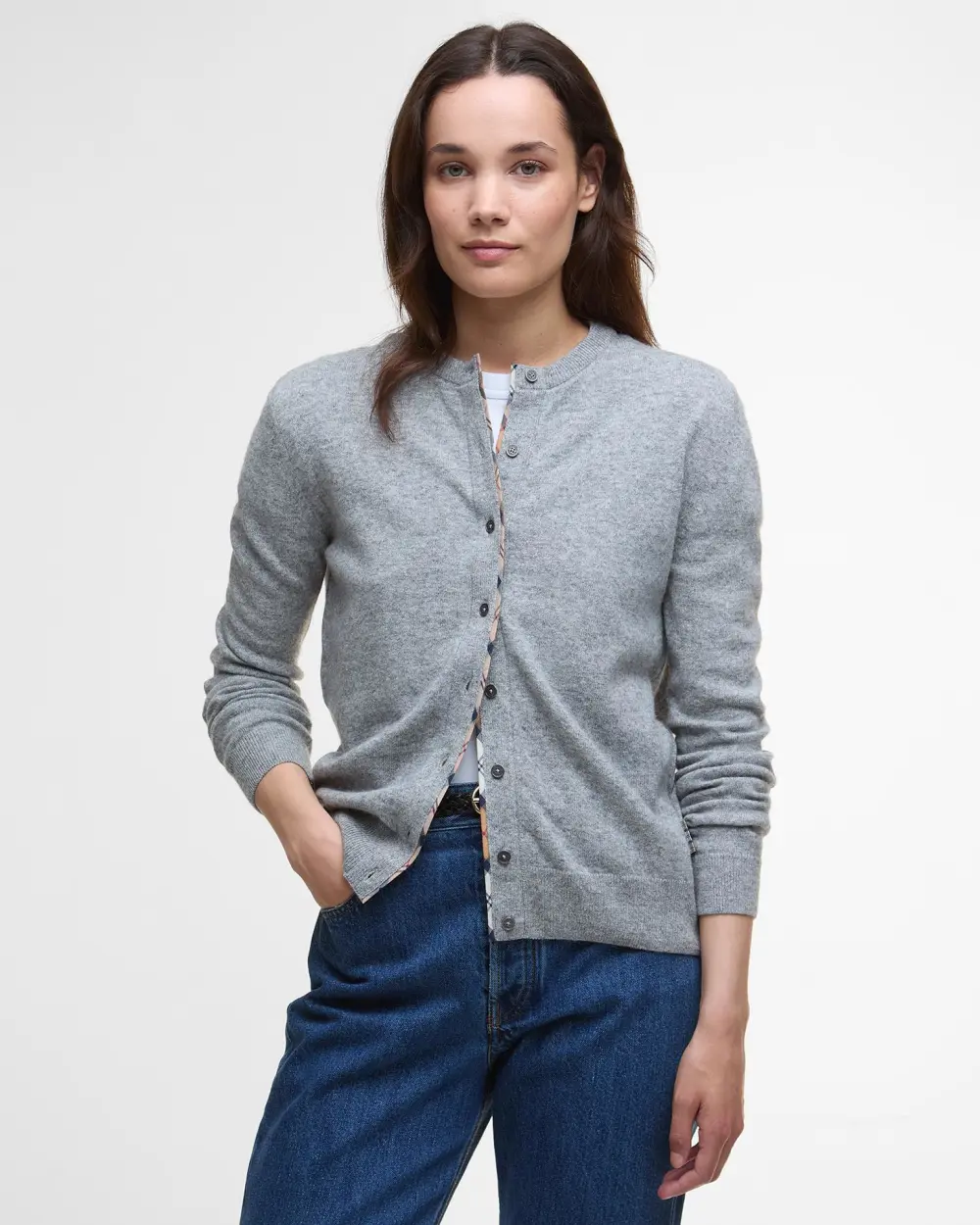 Barbour Pendle-koftan är ett smart och snyggt lager-på-lager-val för våren. Detta plagg i ull- och bomullsblandning har tartankanter i nacken, knappslåen och armbågslapparna, vilket gör den till ett feminint alternativ för helglooken.