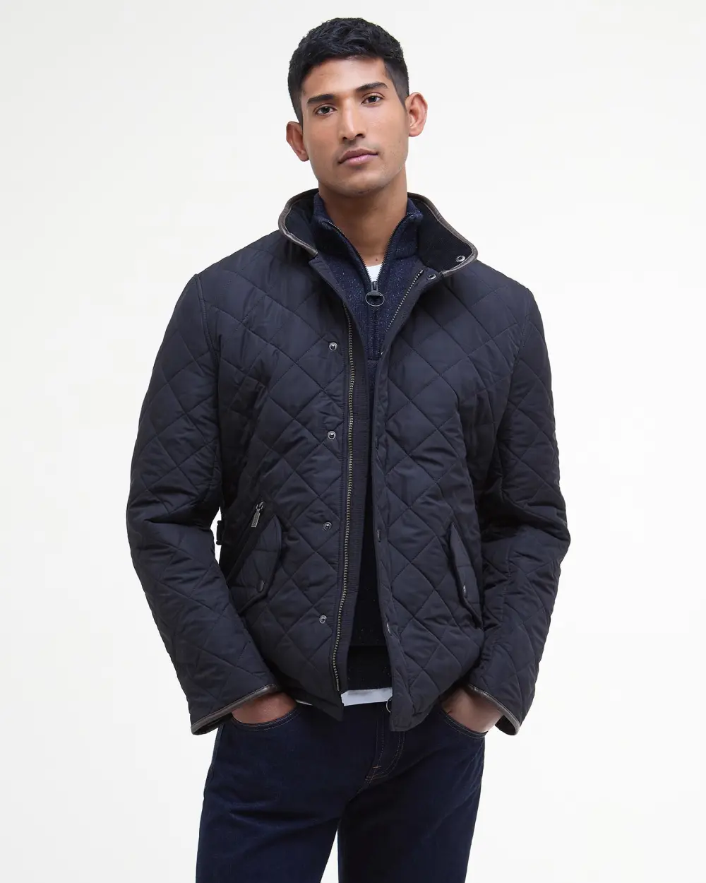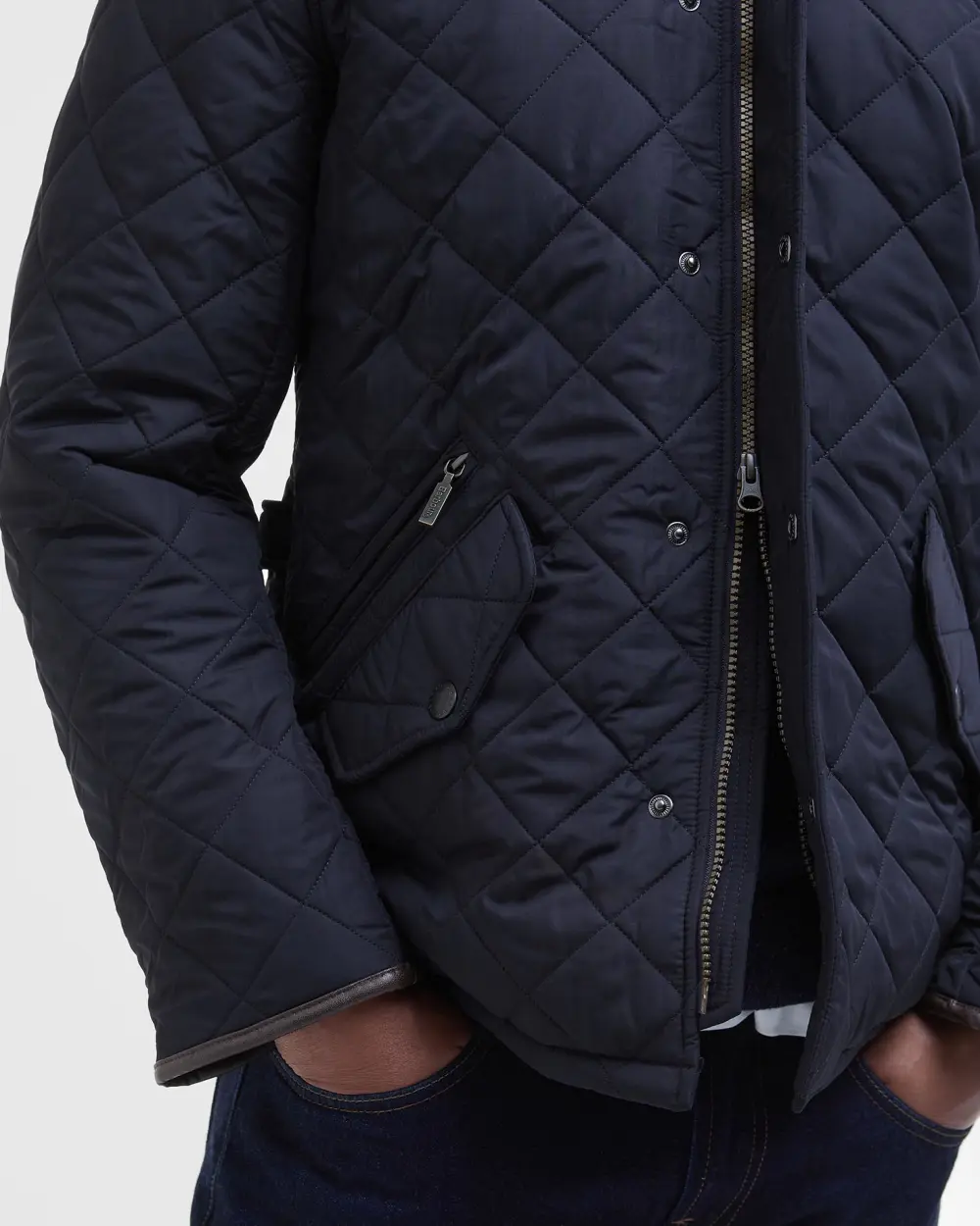 Powell är en quiltad jacka i Chelsea-stil som är tillverkad för utomhusbruk utan att kompromissa med stilen, och blir en storfavorit år efter år. Denna tidlösa och praktiska fleecefodrade jacka erbjuder pålitlig värme tack vare det ikoniska quiltade yttermaterialet med 50 g vadd och ett superisolerande fleecefoder. Tvåvägsdragkedjan med Barbour-märkt ringdragare fästs genom en manchesterfodrad trattkrage, som kan stängas med de robusta nitknapparna för extra skydd mot vind och regn. En smalare, modern form ger en moderiktig look, med flikar bak i midjan för en justerbar passform som är perfekt för viktig vinterklädsel. Två praktiska framfickor erbjuder gott om plats för att bära viktiga saker, med en extra dragkedja för att skydda värdesaker, en snygg konstläderkant avslutar kragen och ärmsluten, och ton-i-ton Barbour-broderi kantas av fickfliken.