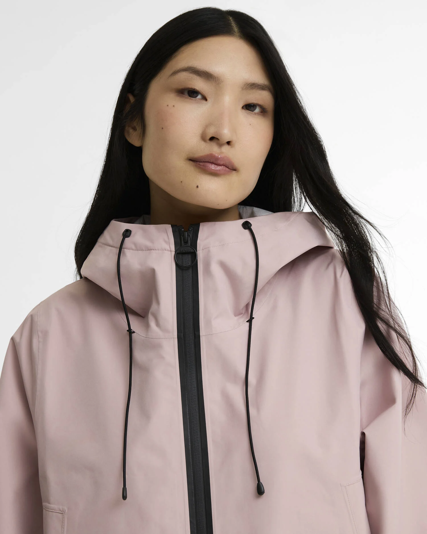 Barbour Thorpe vattentäta jackan har en kort, avslappnad design som kombinerar praktiskhet och stil. Med en dragskojusterbar nederkant för en anpassningsbar silhuett, kontrasterande svarta detaljer och breda passpoalfickor med nitar är denna jacka perfekt för att hålla sig torr och snygg i vått väder.