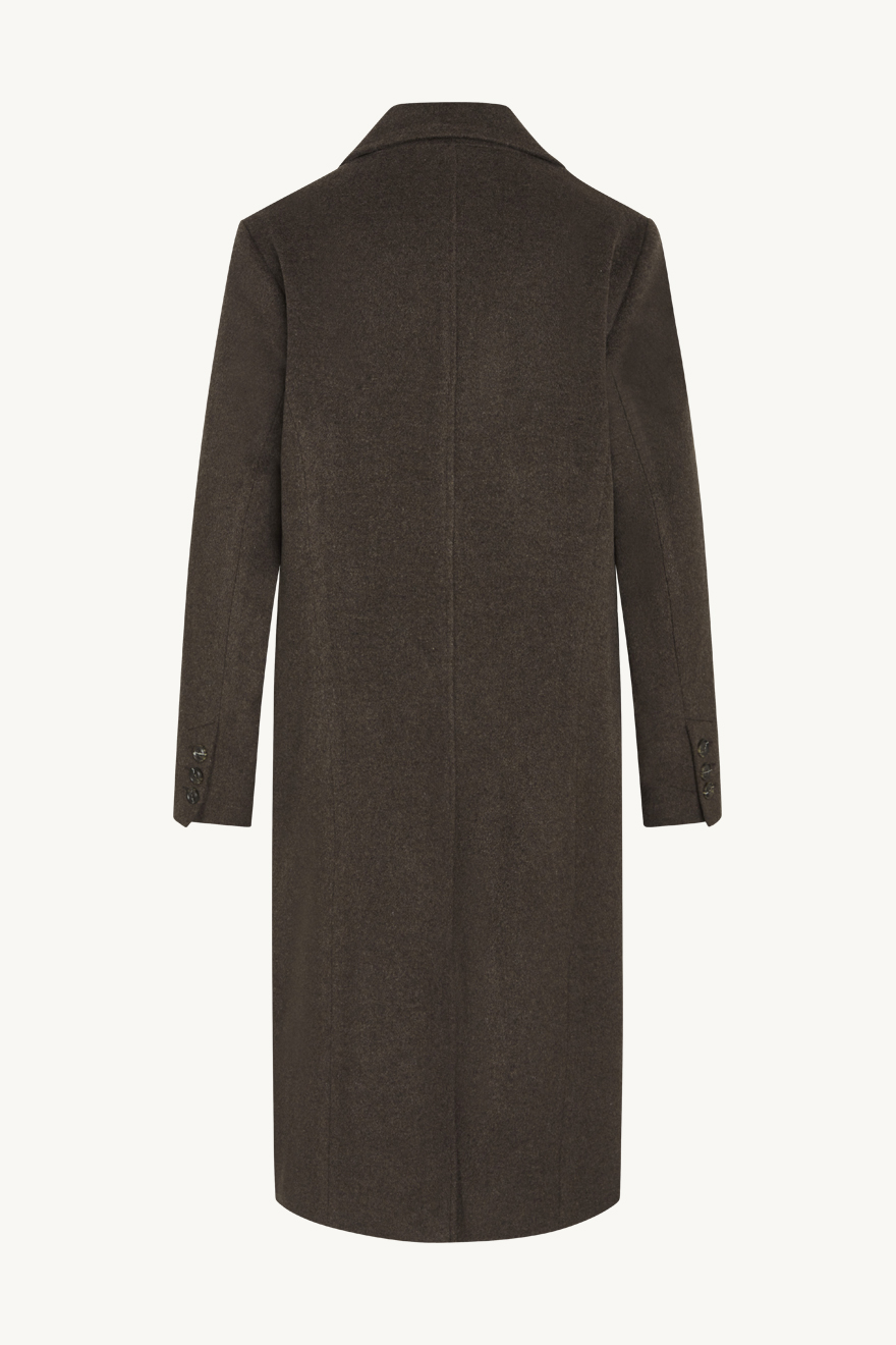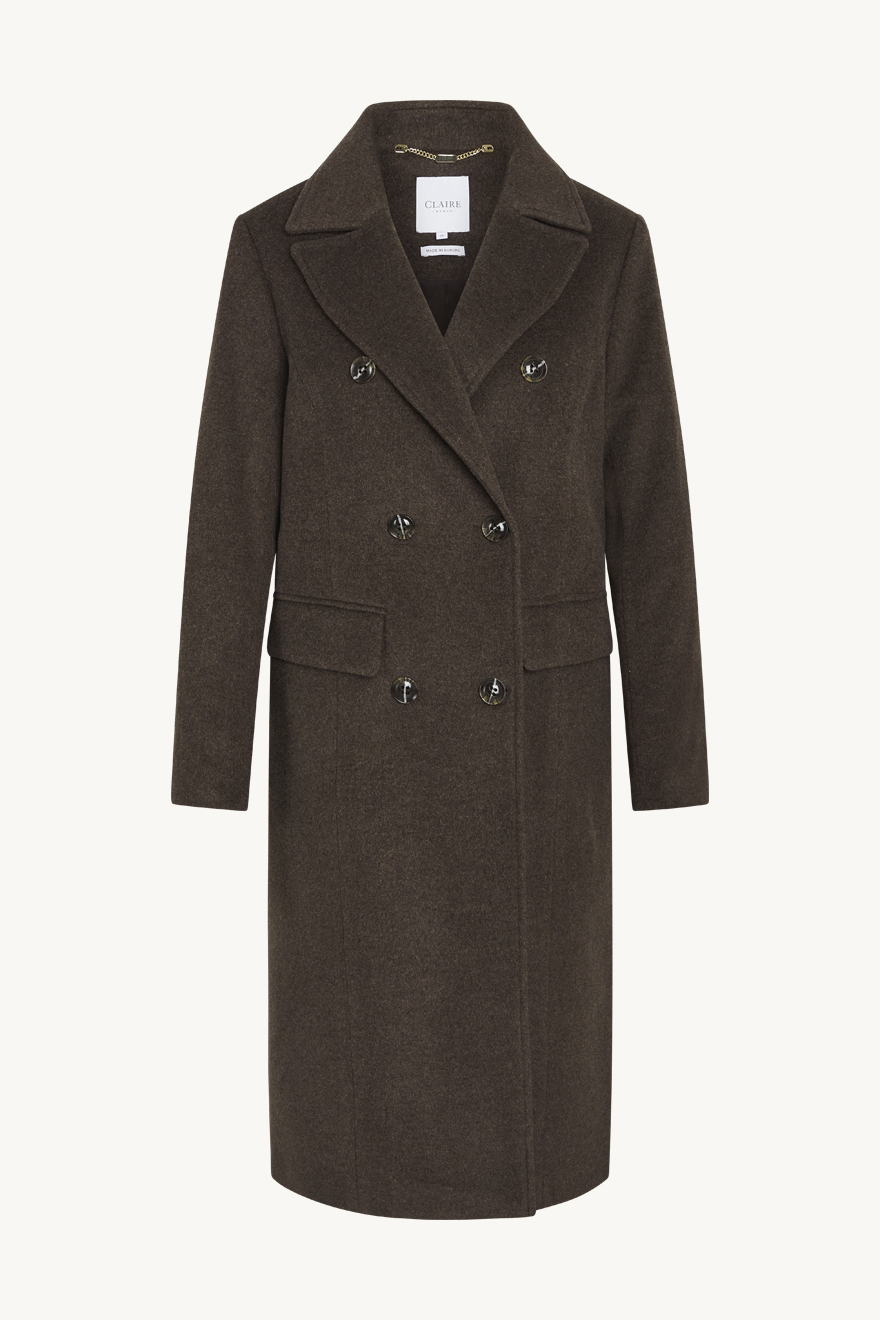 Helfodrad kappa i varm ull med krage och framfickor. Modellen stängs med knappar framtill och har en slits baktill. Denna produkt är tillverkad i EU.