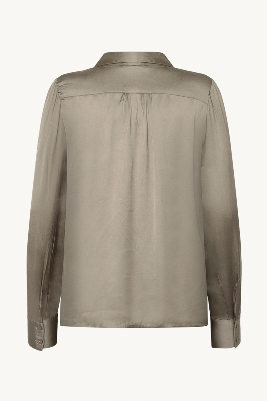Skjorta i mjuk viskos med klassisk krage och liggande på axlarna. Ärmarna är försedda med knappar och skjortan har slitsar i sidorna och längre bak.