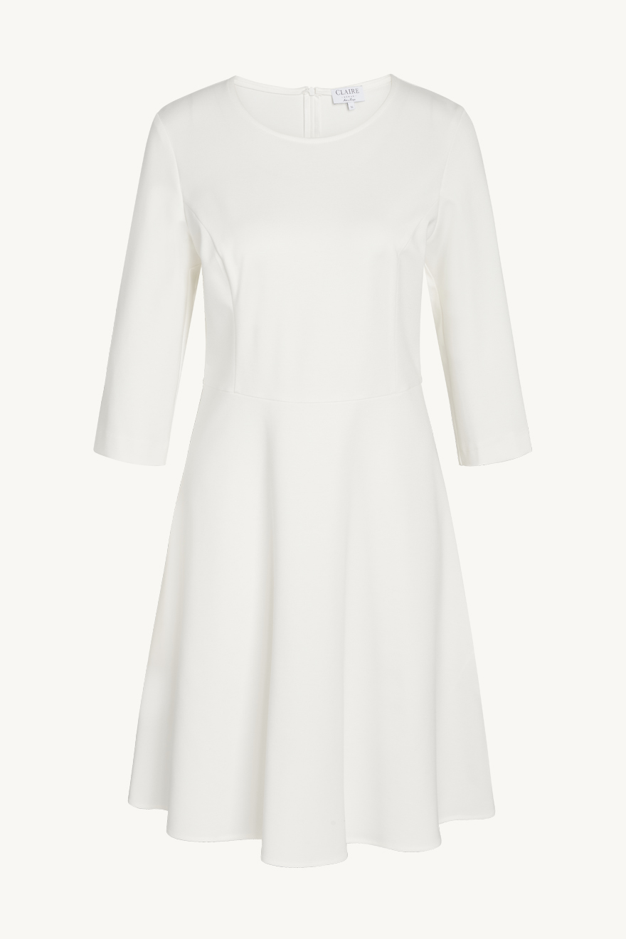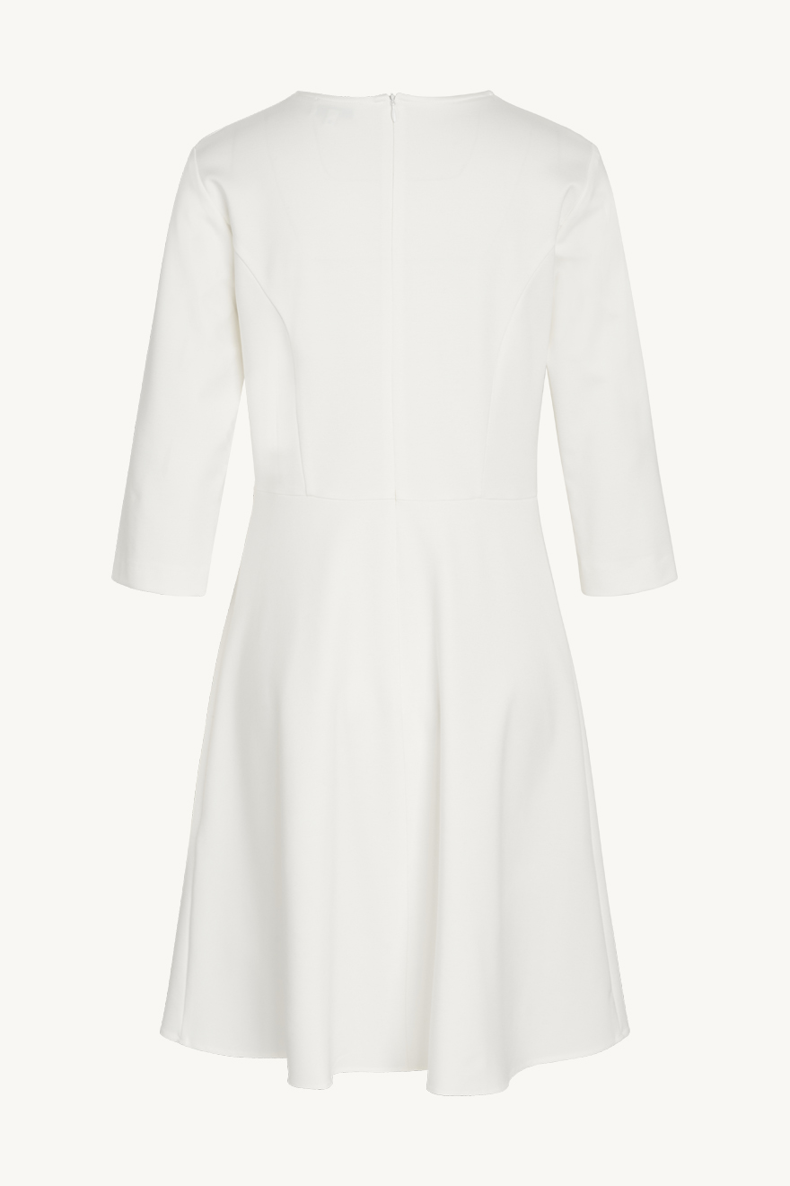Klänning i klassisk stil med trekvarts ärmar. Klänningen är skuren i midjan för en utsvängd siluett. Med dold dragkedja baktill. Tillverkad i EU.