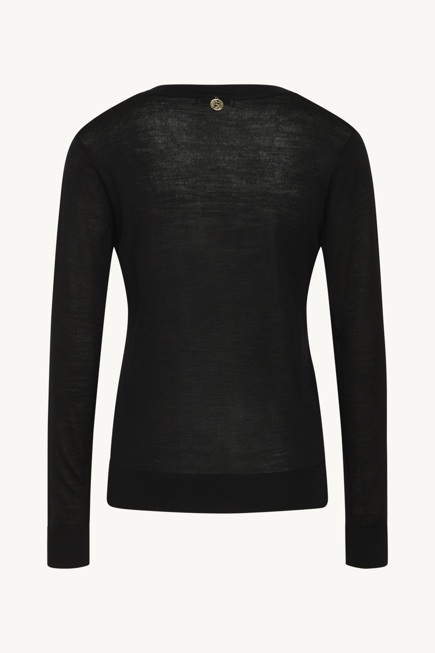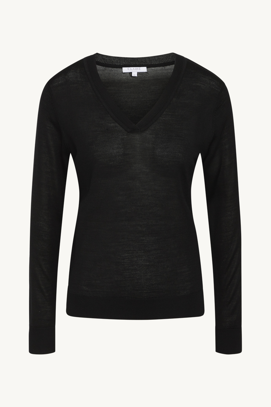 V-ringad tröja i en avslappnad modell från Claire. 100% merinoull. Guldemblem i nacken.