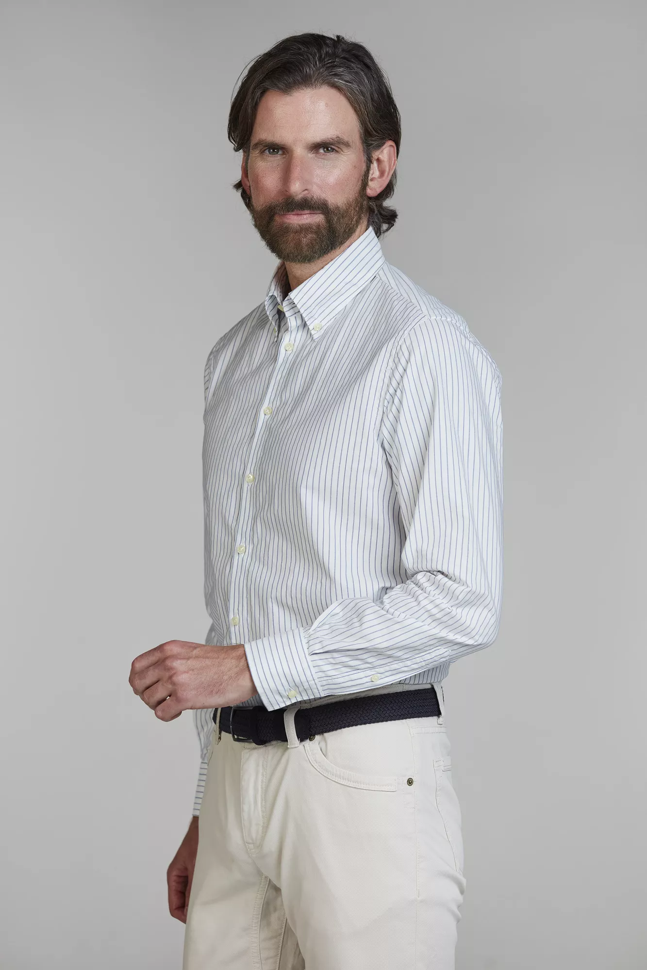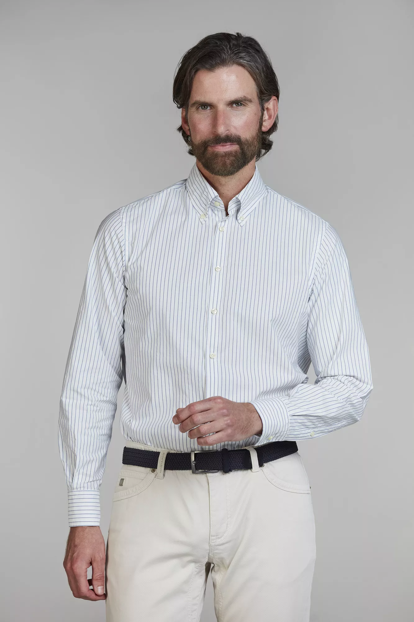 Plaggtvättad bomullsskjorta med button down-krage i randigt mönster. Tillverkad i premiumfabriker med högkvalitativa tyger för en elegant och tidlös look.