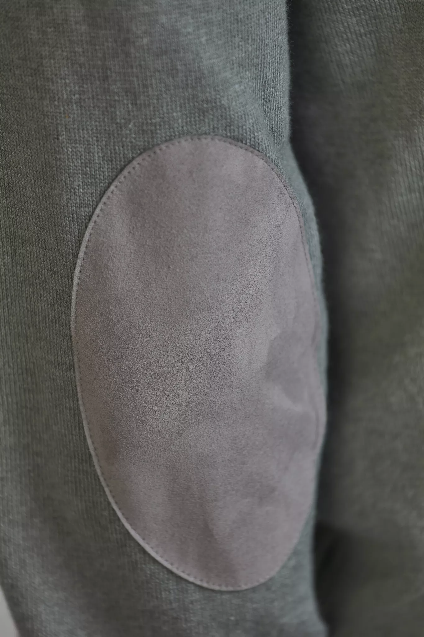 Stickad tröja, Rund hals, Bomull/Kashmir, Ärmpatch, 12gg, Modellen har medium