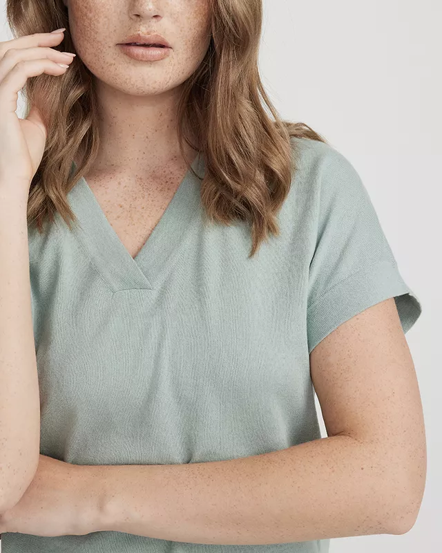 Tunnstickad top med V-neck