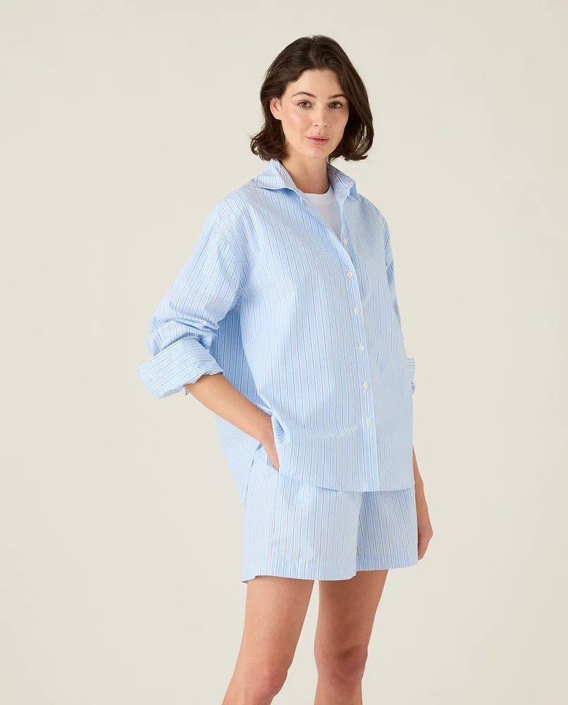 Lexington Casual Org Cotton Poplin Blue Multi Stri