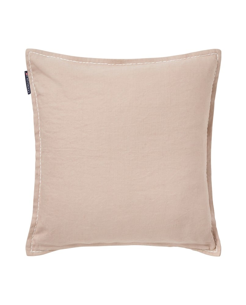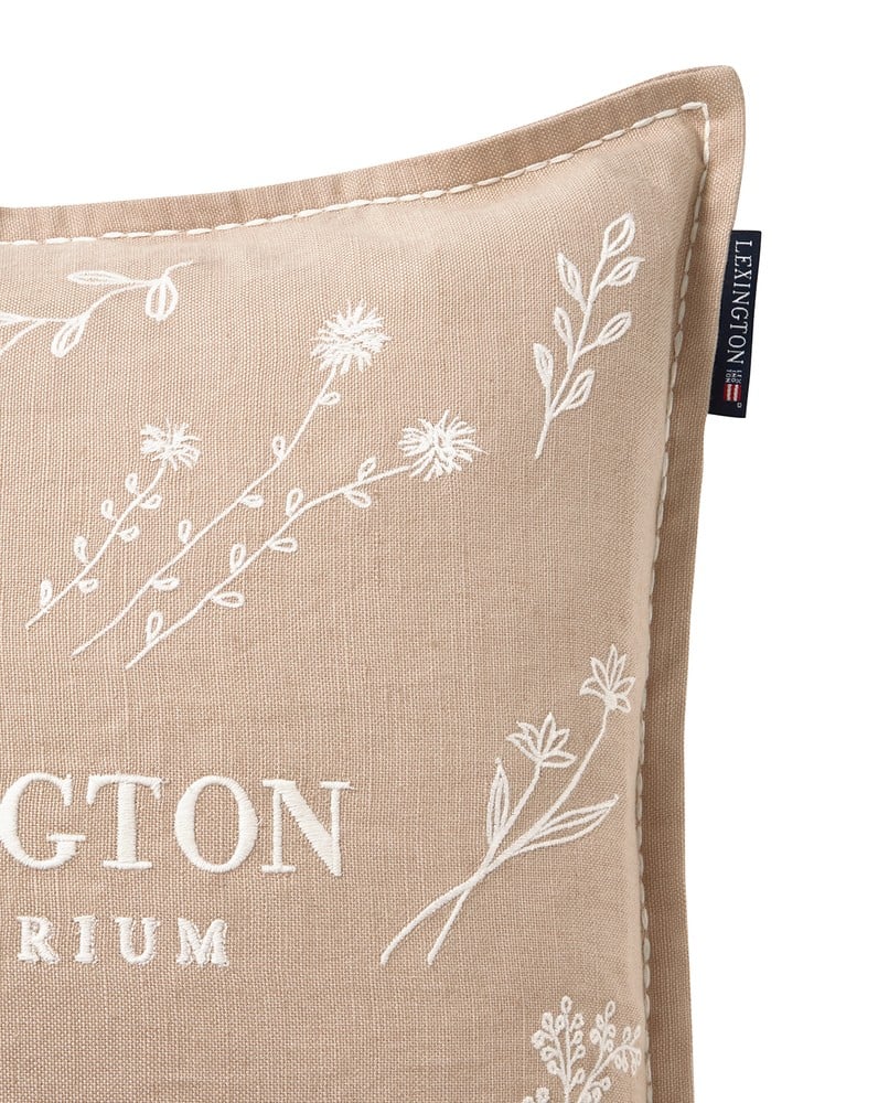 • Kuddfodral i linnemix med blombroderi och logotyp fram
