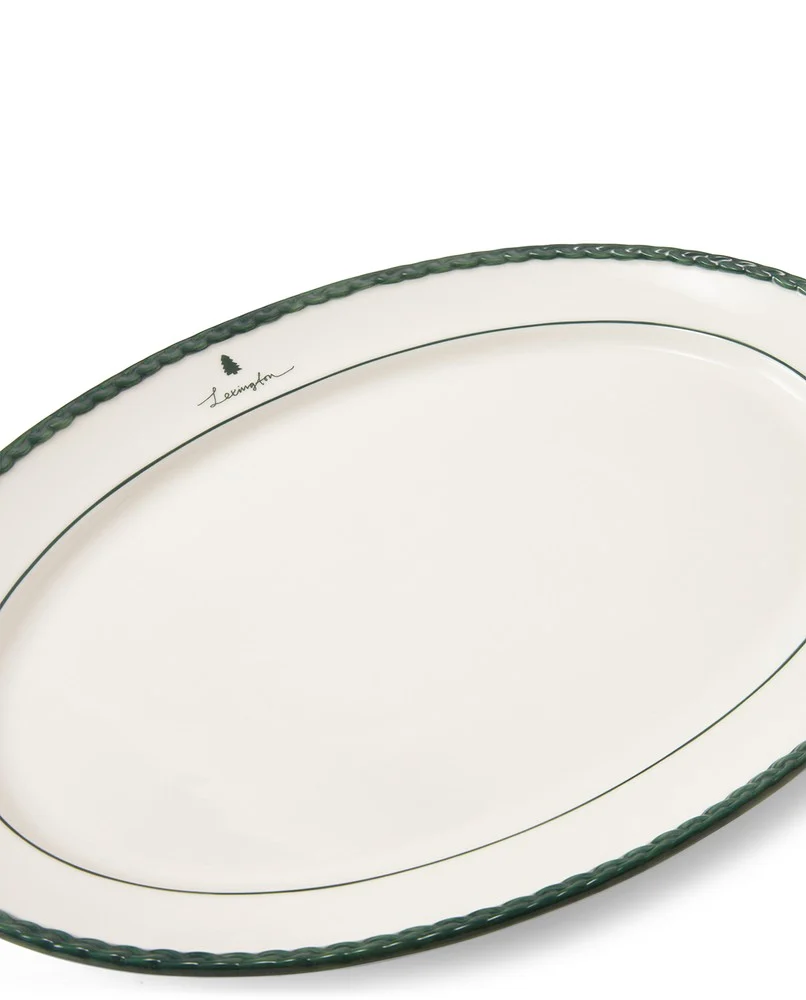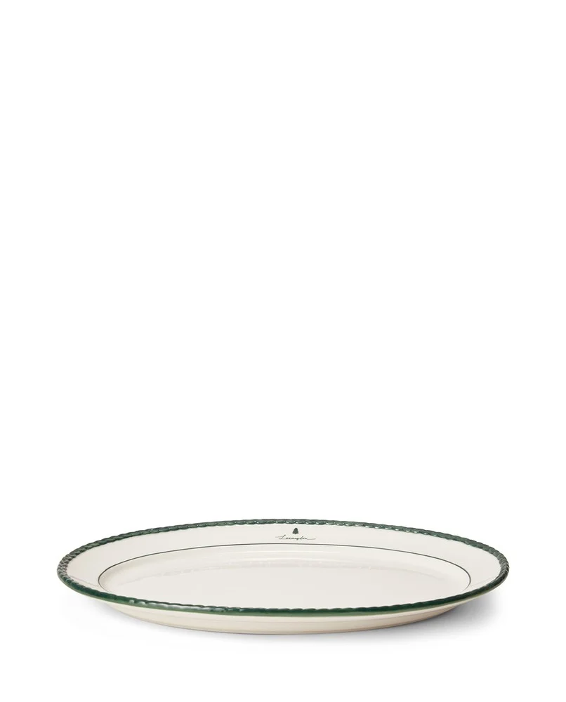 • Serveringsfat i ny design med en liten dekal med logotyp på kanten. Flätad detalj runt toppen, handmålad i grönt. Den kan användas på bordet eller var som helst som juldekoration.