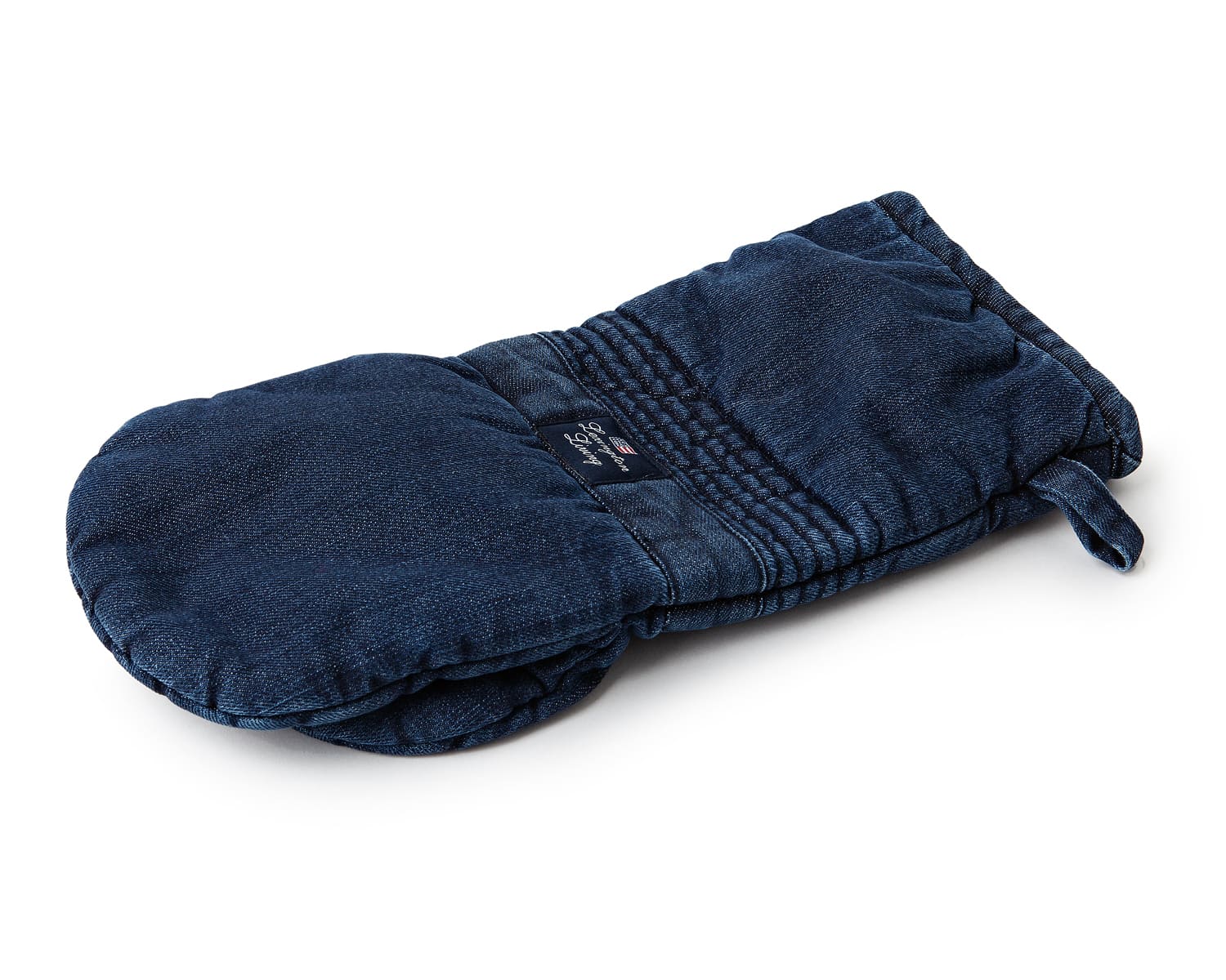 Skydda händerna med den här snygga denimvanten i kraftig bomullstwill. Vanten har ett mörkblått Lexington Living-märke som kontrasterar fint mot de naturvita sömmarna.