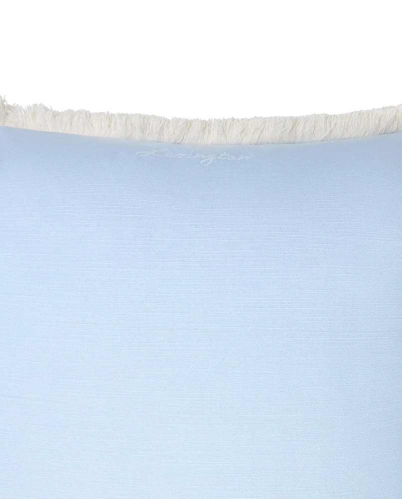Detta eleganta kuddfodral i mjuk lin/bomullsmix har en fin vit bomullsfrans runt om, vilket ger en touch av avslappnad elegans till ditt hem. Den broderade tonala textlogotypen och den vävda Lexington logotyp-etiketten visar varumärkets signatursdetaljer. En dold färgmatchad dragkedja på baksidan ger ett sömlöst utseende. Producerad i en certifierad Green Factory Building och Oeko-tex-certifierad för kvalitet och hållbarhet.