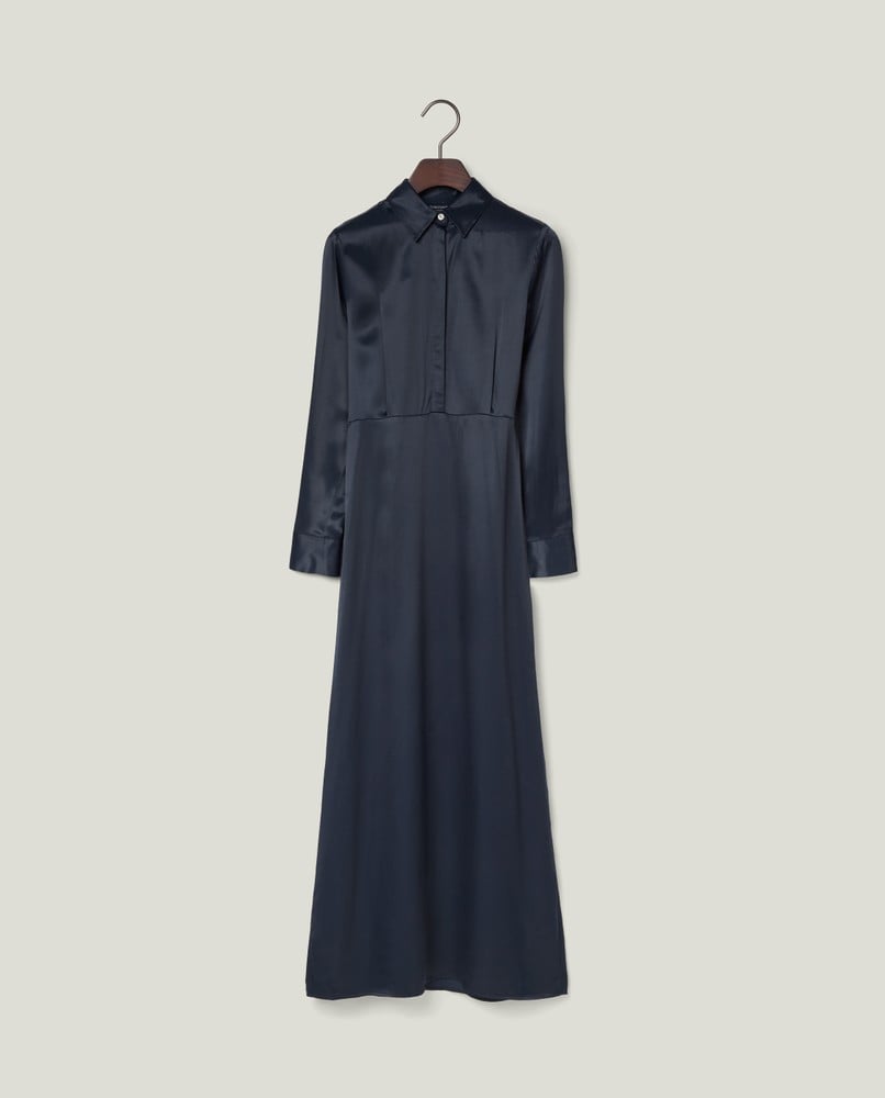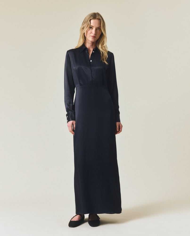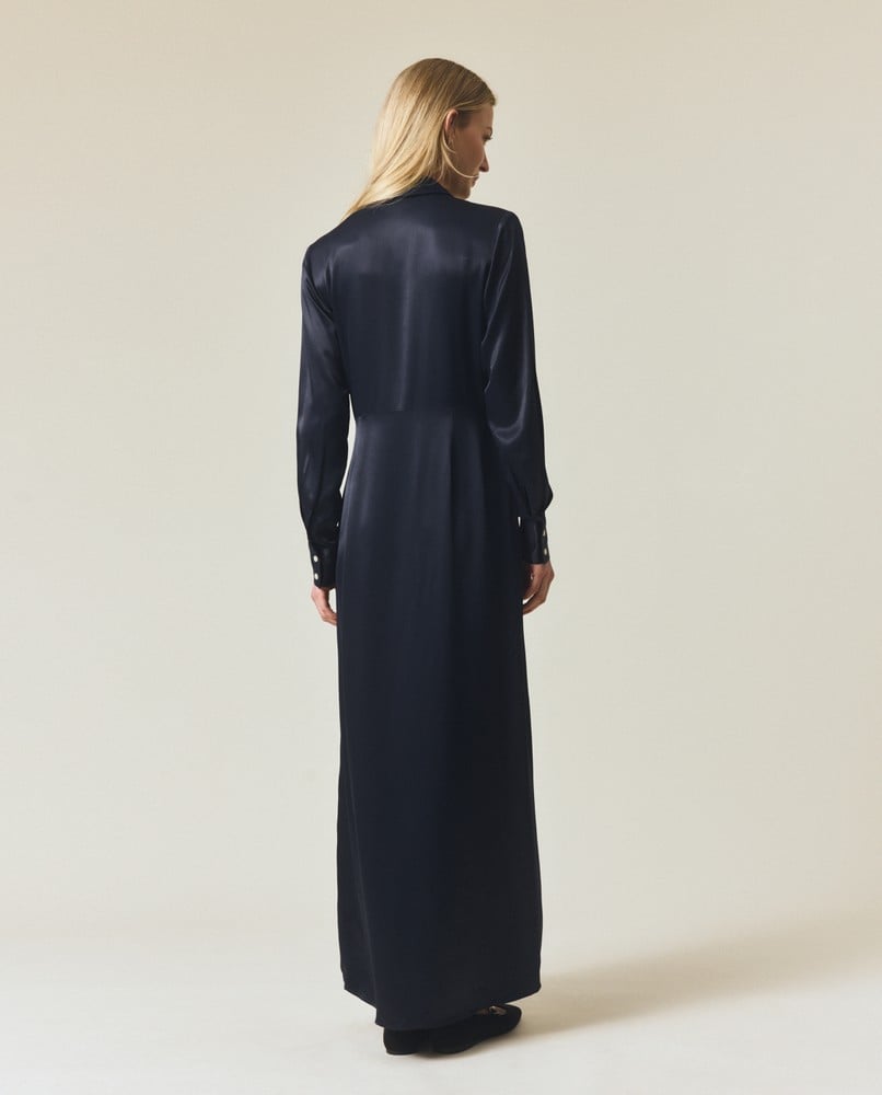 Lexington Maxi Satin Shirt Dress DK Blue
