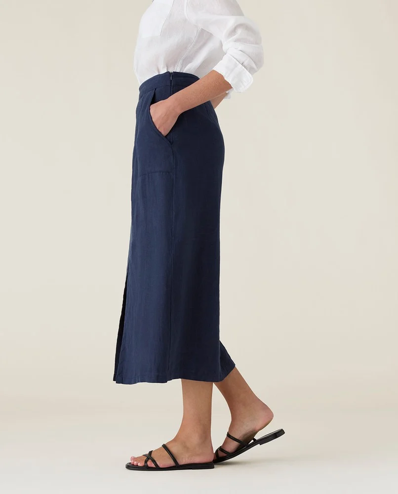 Linnets naturliga textur och fall gör denna kjol till en tidlös investering som bara blir bättre med tiden och utvecklar en vacker, inlevd karaktär som är typiskt Lexington.
