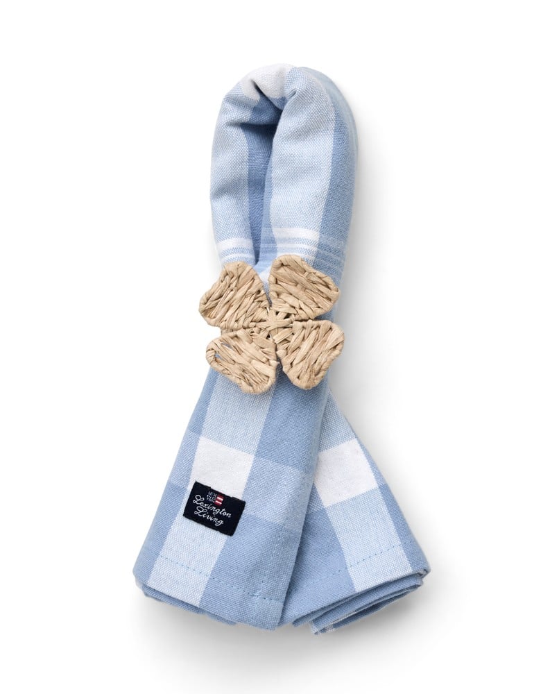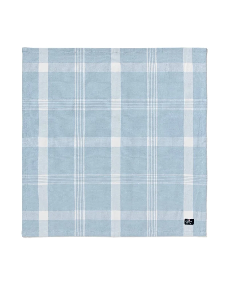 Komplettera din dukning med denna eleganta himmelsblå oxfordservett i bomull, prydd med klassiska vita rutor. Den här servetten är tillverkad av 100 % återvunnen organisk bomull och är både mjuk och hållbar och erbjuder en touch av hållbar sofistikering. Avslutad med en snyggt vikt fåll och en subtil logotypetikett i hörnet, passar den perfekt med den matchande duken. Oeko-Tex certifierad och producerad i en grön fabrik, det är ett ansvarsfullt och tidlöst tillskott till ditt hem. Mått: 50×50 cm. Tillverkad i Indien.