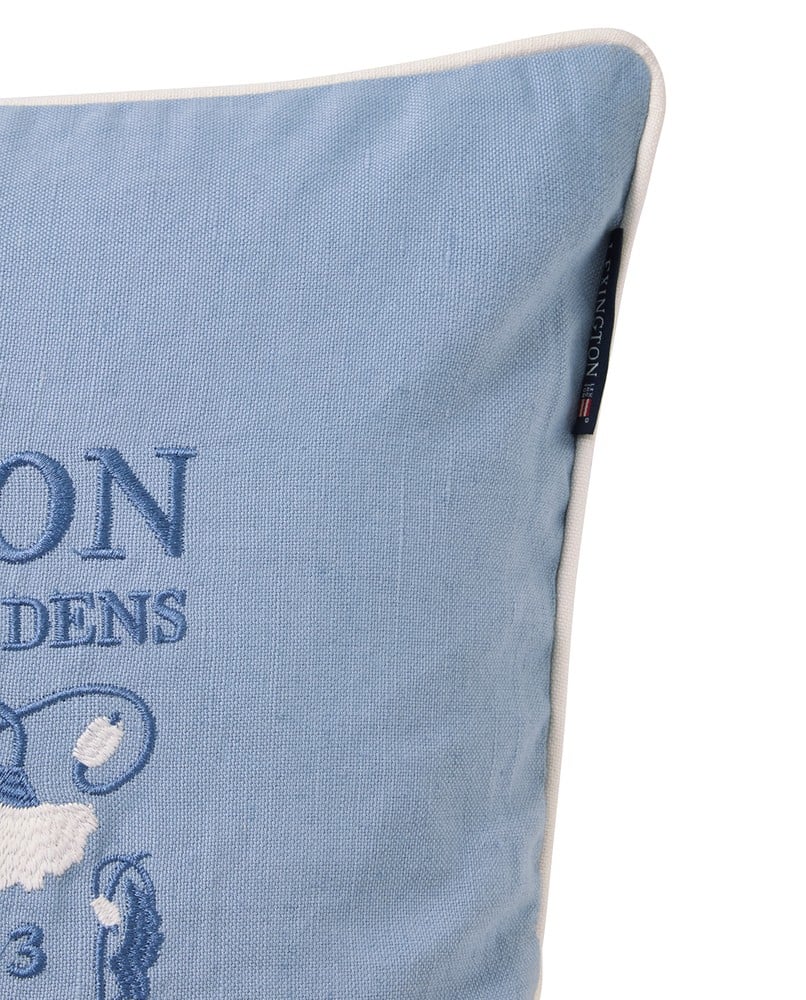 Förhöj ditt utrymme med vårt Vibrant Gardens Linen Blend kuddfodral i blått och vitt. Tillverkad av klassisk avslappnad organisk bomullscanvas, detta kuddfodral har känsliga självtillverkade passpoaler runt om för en raffinerad finish. Den ikoniska Lexington-logotypen är elegant broderad på framsidan, medan den dolda dragkedjan i botten säkerställer en sömlös look. Tillverkat i en certifierad Green Factory Building, är detta hållbara föremål en del av vår vårkollektion, som mäter 50×50 cm och är gjord av en lyxig blandning av 55% linne och 45% bomull.