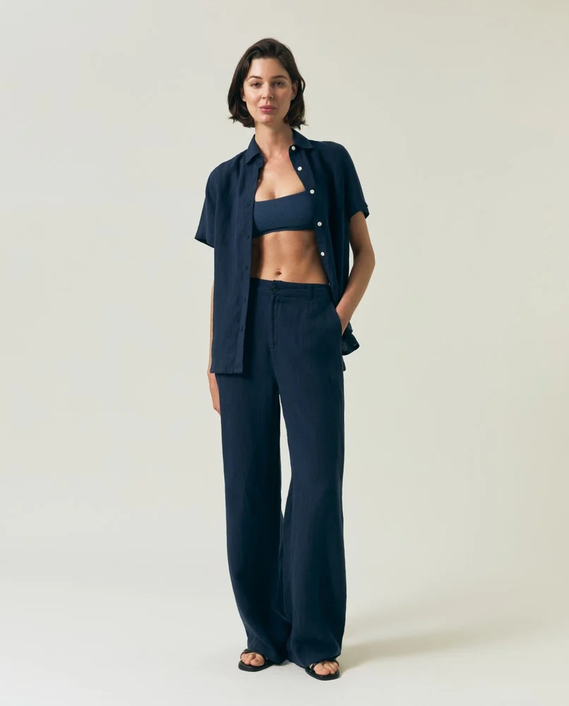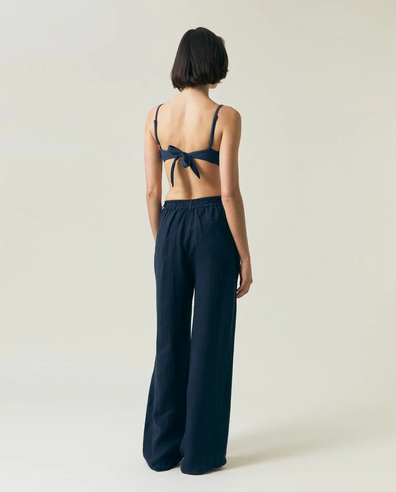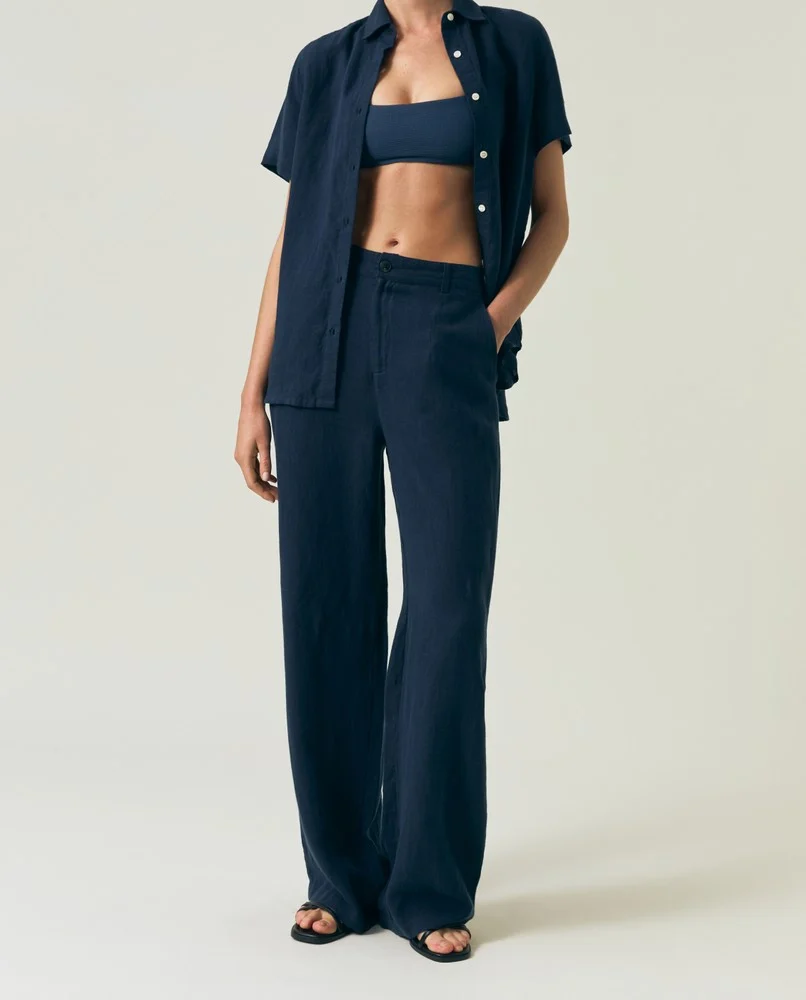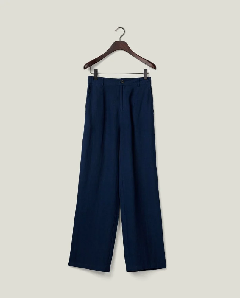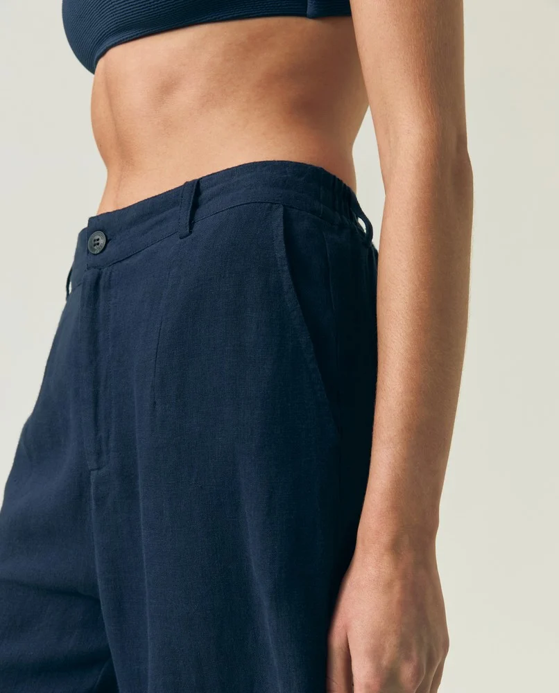 Lexington Waist Wide Leg Linen Pants DK Blue
