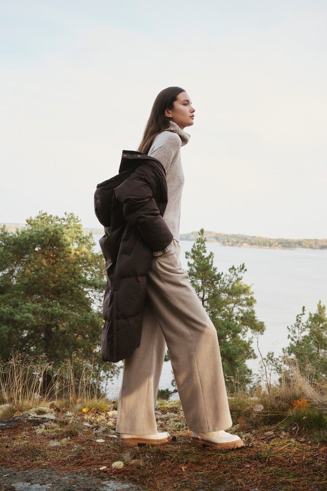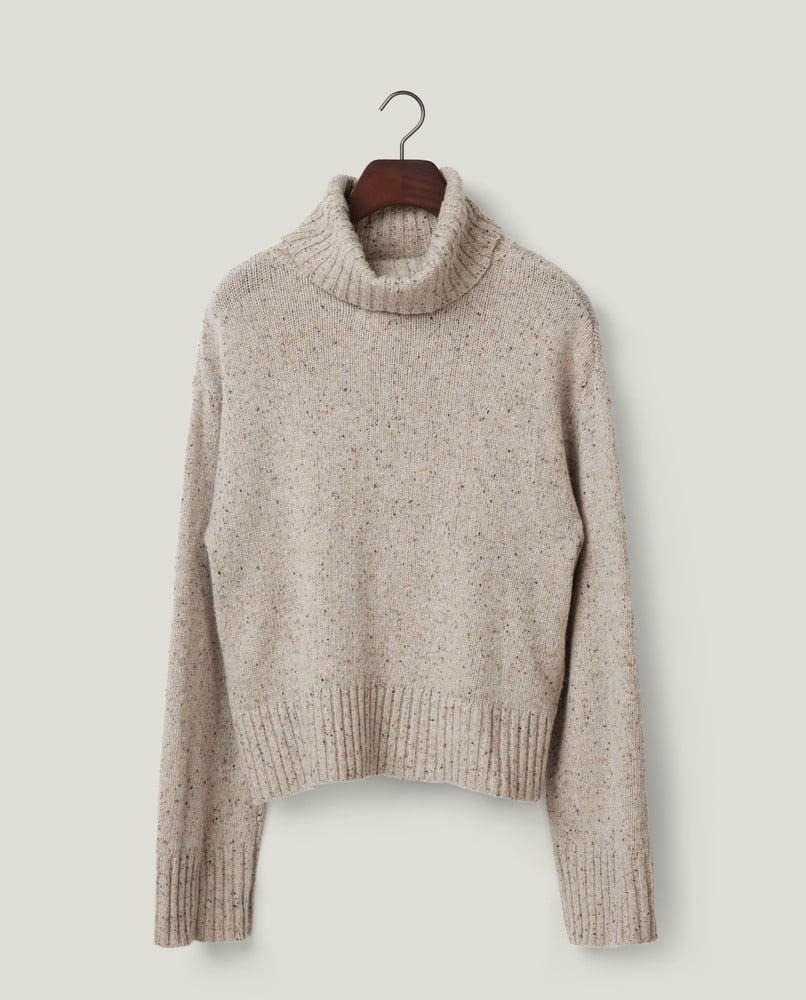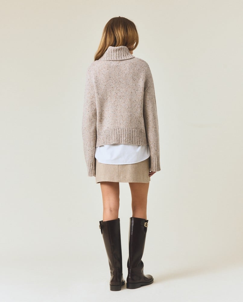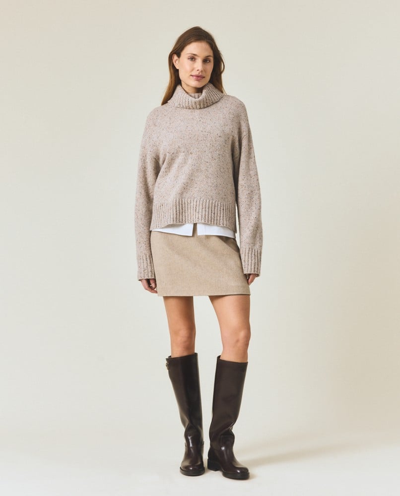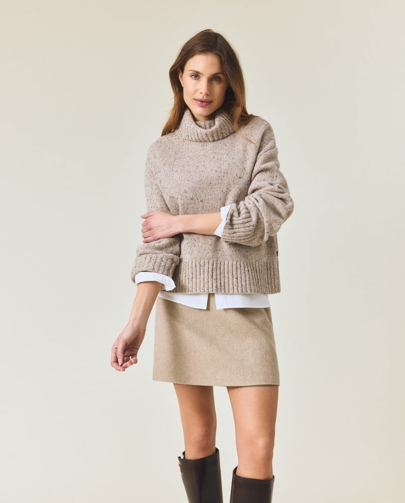 Denna lyxiga stickade tröja i ullblandning med polokrage erbjuder exceptionell värme och komfort under vintersäsongen. Tillverkad av en premium ullblandning som ger både isolering och mjukhet, har den en stilfull vikbar polokrage som tillför både sofistikation och funktionalitet. Den tunga stickade strukturen säkerställer hållbarhet samtidigt som den ger utmärkt skydd mot kylan.
